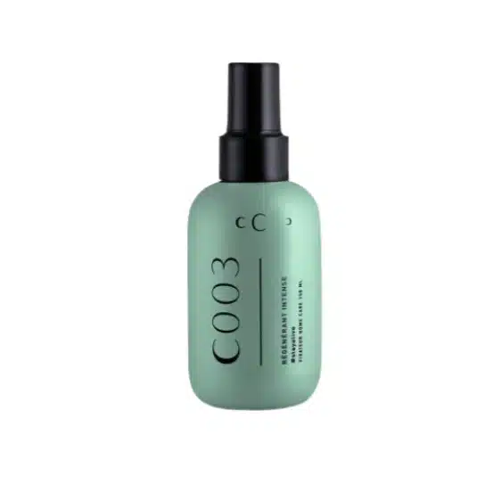 MODE D’EMPLOI: Vaporiser le Fixateur Régénérant Intense Sans Rinçage C003 sur cheveux humides sans toucher les racines. Démêler et coiffer comme désiré.